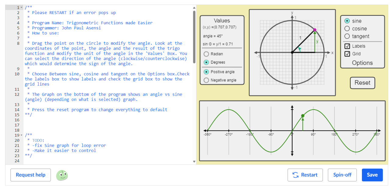 A simulator application showing how trigonometric functions look like in the unit-circle level and how its